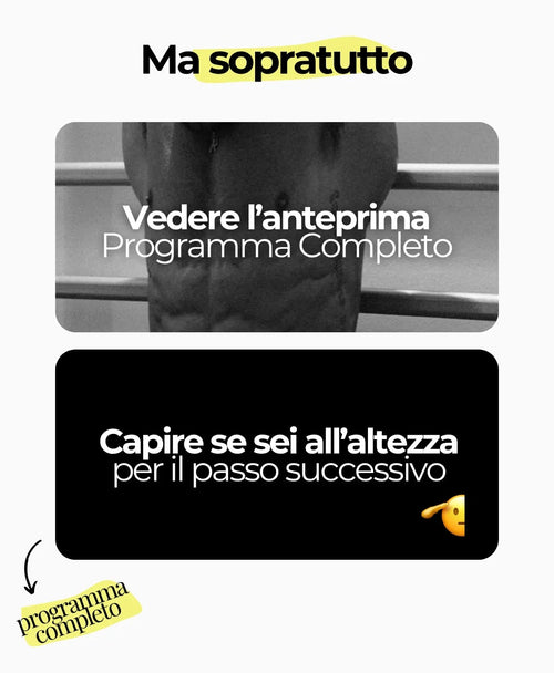Dopo aver completato il programma gratuito, potrai decidere con più chiarezza se proseguire con il programma completo, che include tutti i moduli teorici, piani avanzati, progressioni e approfondimenti.