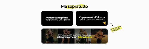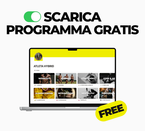 È un'anteprima gratuita situata su Notion del programma completo di allenamento ibrido. Ti permette di sperimentare 7 giorni di allenamenti e accedere al 40% della teoria presente nel programma completo, per capire se questo metodo fa per te.